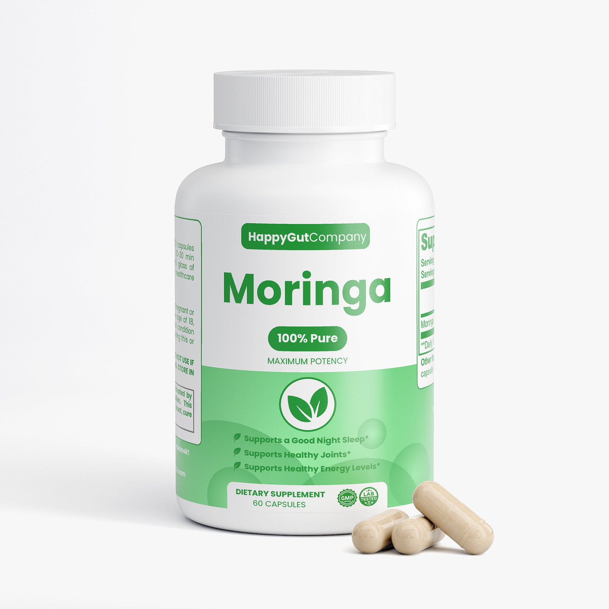 - Nutrient-Rich Composition: A source of various plant compounds naturally occurring in Moringa leaves.
