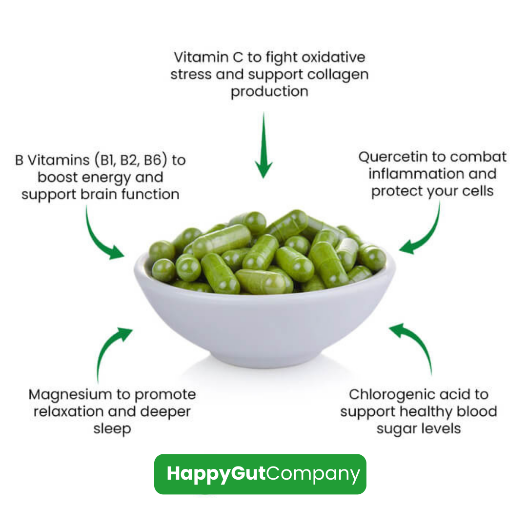Moringa is renowned for its high nutrient content and wide range of health benefits. Our HappyGut Moringa is formulated to boost energy levels, enhance cognitive function, support immune health, and promote overall well-being by providing your body with essential nutrients.